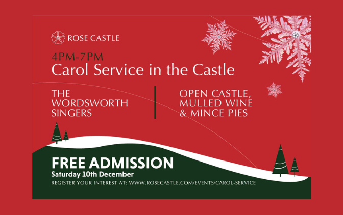 This even has now passed - please keep an eye out for our 2023 carol service concert! Hear the Choir of the Year "Wordsworth Singers" in the newly renovated Chapel at Rose Castle from 4pm-7pm on Saturday 10th December 2022.